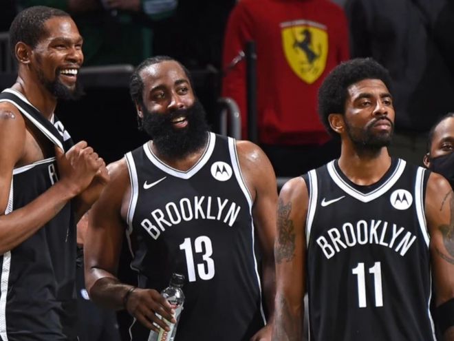 要知道地处纽约的篮网队,之前可是“巨头”球队的狂热粉丝,曾经组建过德隆、乔-约翰逊、加内特、和保罗-皮尔斯、洛佩兹的豪华五巨头,随后又组建了杜兰特、哈登和欧文的三巨头阵容,不过两次都以失败告终,还透支了球队未来不少资产。
